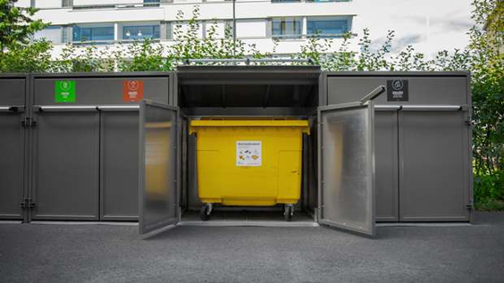 “Green Point“: a landscaped area with appropriate building infrastructure and equipment, organized by the Municipality so that citizens can dispose of recyclable materials, collected separately, such as paper, glass, metals, etc, to then be promoted for recycling reuse. Modular Modul Bin Shelters can be built in different sizes of recycling combinations. It can be used with all the commonly known waste bin models. Within a single container can accommodate two 240/360 l or one 660 l trash can. We have also taken into account the fire safety of waste collection points and Modul 1 model is also available as a fire-isolated version. The inside of the bin shelter is lined with A1 category non-combustible fireproof panels. The Finbin® Modul can build stylish waste collection points for residential houses and commercial real estate courtyard areas.