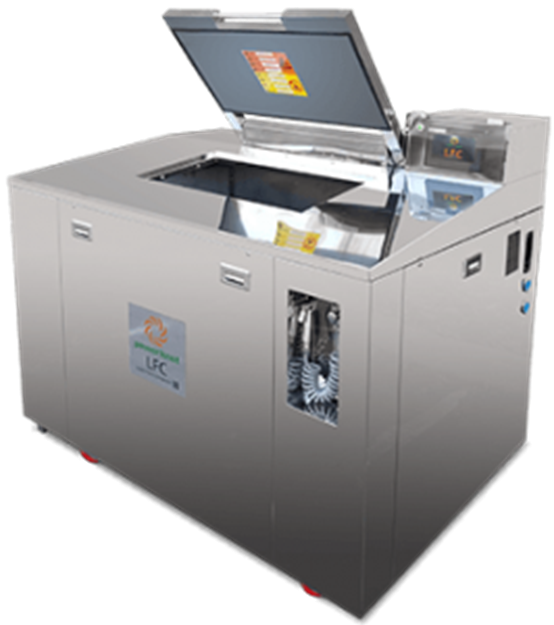 The LFC is a fully enclosed automatic food waste machine that disposes of most food matter within 24 hours. Once it is installed, you can add waste food at any time and only decomposed food is discharged into the wastewater. Water is injected into the machine to maintain equilibrium for the microorganisms, to rapidly decompose the food, and to flush decomposed material out of the machine. A rotating arm inside the machine slowly churns the waste food to constantly mix the old food, new food, oxygen, and micro-¬organisms to enhance the decomposing function.