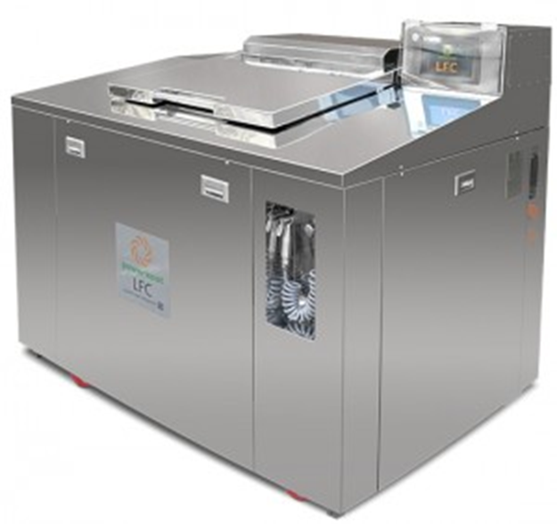 The LFC is a fully enclosed automatic food waste machine that disposes of most food matter within 24 hours. Once it is installed, you can add waste food at any time and only decomposed food is discharged into the wastewater. Water is injected into the machine to maintain equilibrium for the microorganisms, to rapidly decompose the food, and to flush decomposed material out of the machine. A rotating arm inside the machine slowly churns the waste food to constantly mix the old food, new food, oxygen, and micro-¬organisms to enhance the decomposing function.